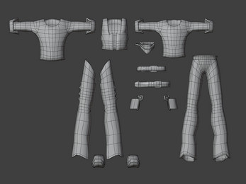 The model comes fully rigged with a skeleton (fixed naming), polished weight painting, hand painted textures, and hand-crafted animations for essential gameplay moves. The outfit is modular with multiple clothing items (hat, vest, boots, gun holster, gloves, pants, scarf…), allowing quick customization.