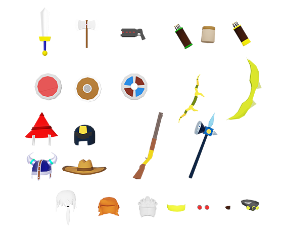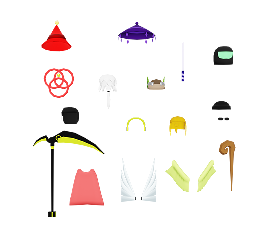 …and extras like: hair, hats, glasses, masks, backpacks, and weapons (main + off-hand).